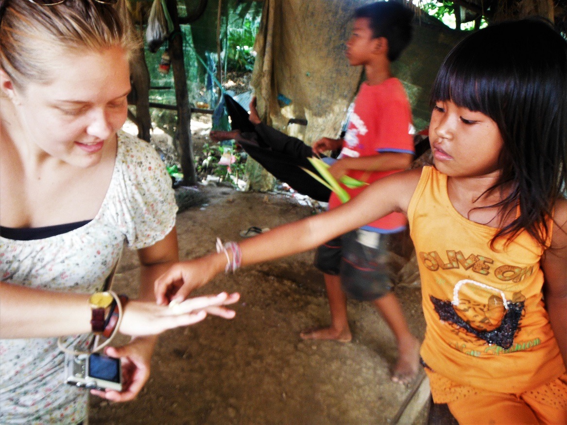 They excitedly show us around their village, talking with surprisingly good English and then make us jewellery from bamboo which was so sweet. They don’t ask for money for them which I thought they might, they seem to just be having fun showing us what they can do. Whether or not its because we bought a few drinks and souvenirs from them- I’m not sure however!
